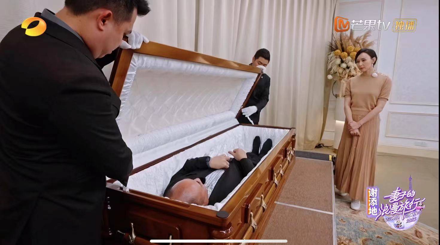 朱兆祥给老婆胡静这个礼物,真的很催泪,朱兆祥说出了理由,他说自己和胡静认识20年,结婚17年,比她大13岁,所以得提前给她一个心理准备,那就是真的上演老公去世的葬礼。普通人可能真的无法接受这样的桥段,但朱兆祥家族企业都是做殡葬服务的,所以这对于他们来说,可能没有那么多的忌讳。